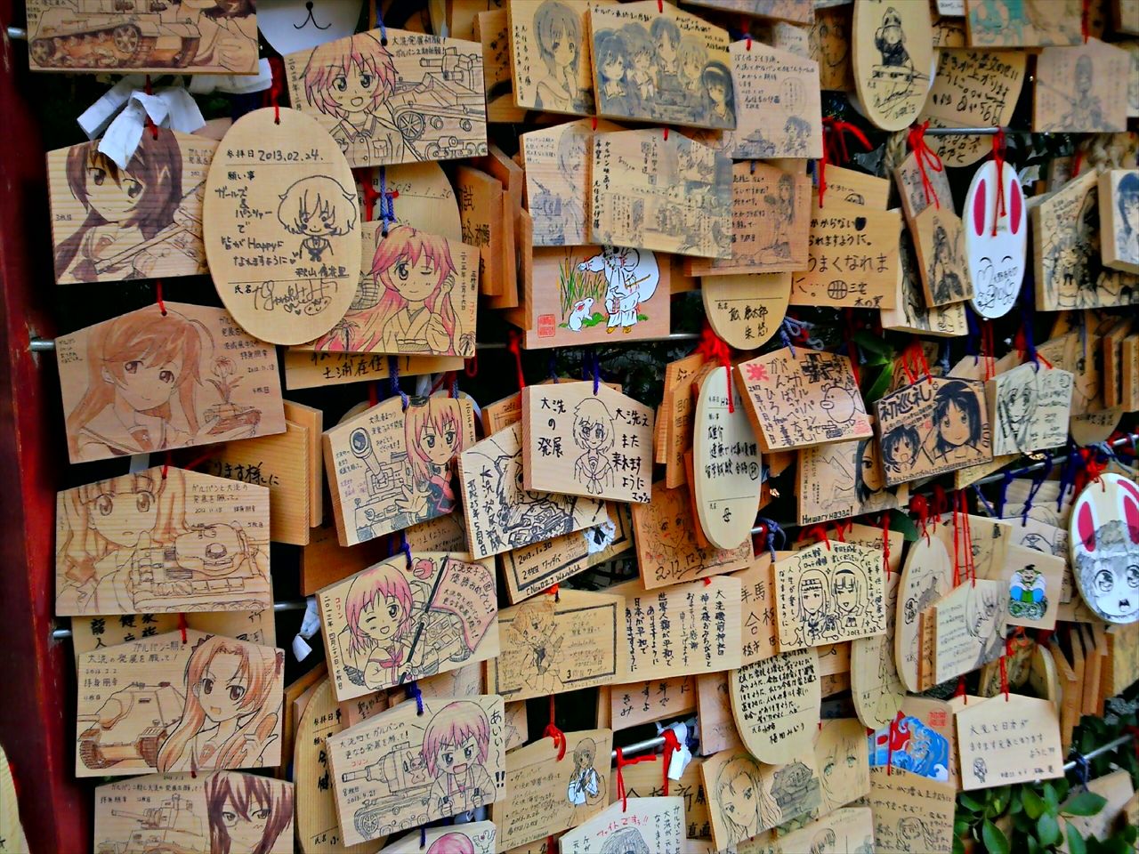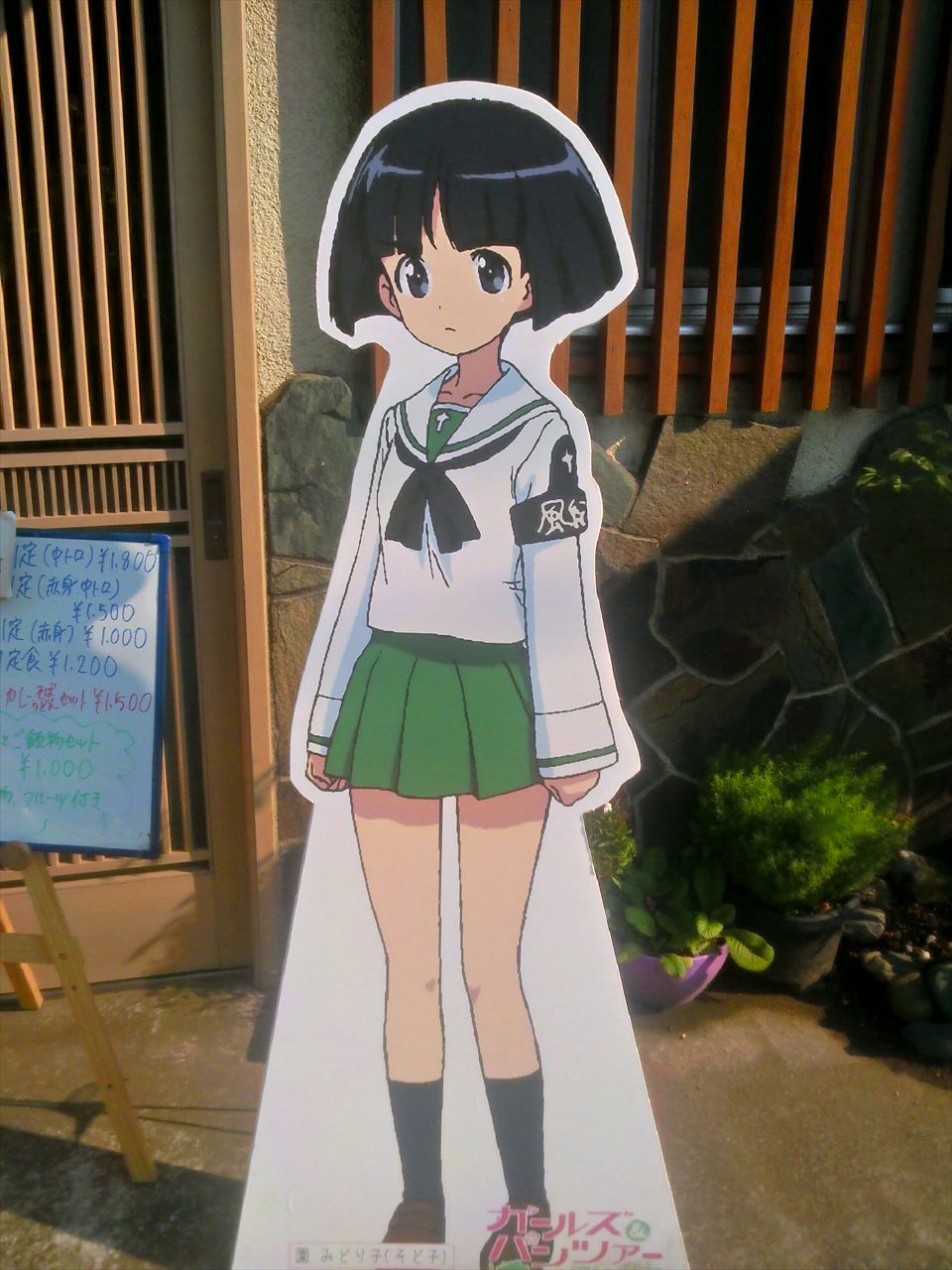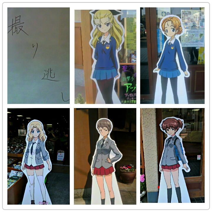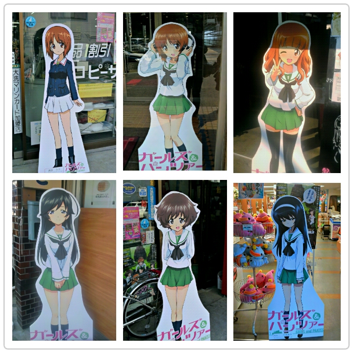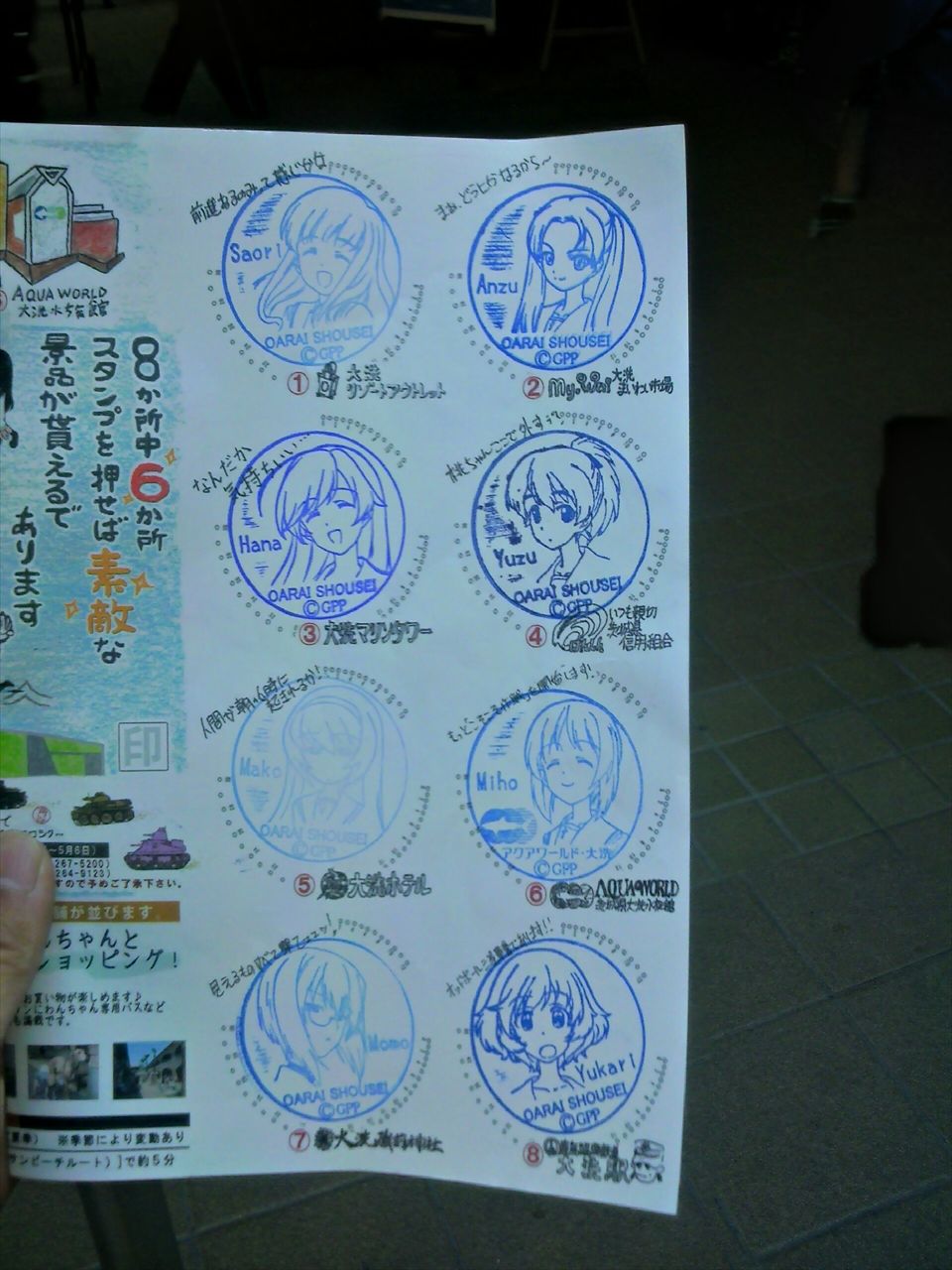 サークルの活動とは関係ないのですが、GW中にアニメ『ガールズ&パンツァー』のロケ地である茨城県大洗町に聖地巡礼してまいりました。以下は、某SNSに友人向けとして書いた文章なので、いささかくだけた文体になっておりますが、せっかくなので貼っておきます。画像は、クリックすると拡大表示されます。 なお、サークル広報ラジオ「パニキチレディオ」第5回配信でもレポートをしておりますので、併せてそちらも聴いていただけると嬉しいです。 【聖地巡礼までの流れ】 5/3 高校の友人と飲み会 →友人宅にお泊り 5/4 アニメ観たりゲームしたりとダラダラ過ごす。 →そういえば今、大洗はガルパンで盛り上がってるらしいねー →友人が録り貯めていたガルパン全12話を一気視聴。王道展開で非常に素晴らしい。 →隣県で近いし、大洗行ってみる? 5/5 決行 そんな感じで、ガルパンにわか2人がその場のノリと勢いで聖地巡礼してきた。以下画像を交えたレポート。 《大洗駅》 行きは渋滞やナビくんの大雑把ガイドもあって3時間くらい。11時頃に大洗に着いて、まずは大洗駅に行ってみる。それっぽい方々や痛車もちらほらと。ガルパンスタンプラリーをやってるそうなので、台紙を貰う。 ↑晴天に恵まれ、絶好の聖地巡礼日和でした。 とりあえず町内を車でぶらぶら。途中、商店街に紛れ込んで、店頭にガルパンパネルを幾つか確認(商店街の各店舗に1体ずつ置いてあるガルパンのキャラパネルを巡る「ガールズ&パンツァー街中かくれんぼ」という企画。全54体)。 12時頃、大洗リゾートアウトレット向かいの町営駐車場に駐車して、徒歩でアウトレット方面へ。画像は撮りませんでしたが、大洗女子学園優勝祝いののぼりが至る所に立っていました。 《茨城まいわい市場、大洗リゾートアウトレット、大洗マリンタワー》 アウトレット併設の「茨城まいわい市場」に移動。 ↑西住殿たちがたむろしてた駐車場(店舗裏手側) ↑入口にいっぱい人が並んでいると思ったら、名物の餡香やき&ガルパン物販コーナーの行列でした。 ↑売り場には、声優さんたちのサイン色紙や交流ノートも。 ↑餡香やきには、西住殿の焼き印が。 ↑さつまいもアイス。劇中仕様の74アイスに。 ↑まいわい市場の買い物袋もガルパン仕様。 ↑東側にそびえ立つは、大洗マリンタワー(古のナンパスポット)。 《商店街》 スタンプラリーのスタンプをぺったんして商店街方面へ出ると、ちらほらと同族らしき方々が。商店街に出ると、イキナリ旅館肴屋本店が見えてきてテンション上がる。 ↑4話の対聖グロリアーナ市街戦にて、戦車が突っ込んだ旅館肴屋本店(実名)。ロビーはガルパンミュージアムになっているそうな。わたしはお会いしませんでしたが、劇中にて「店を新築できる!」と喜んでいた若旦那は実在されるそうです。 ↑同じく4話市街戦にて、あんこうさんチームのⅣ号が睨み合いになる直前に建っている、魚屋の魚忠(劇中では魚剣)。 ↑同シーンに映る旅館福本楼(劇中では福が逆さになっている)。 ↑同シーン、かめさんチームが救援に来た&あんこうチームが離脱した細路地。実際は戦車なんて通れないような道幅。 商店街は巡礼客歓迎ムードで、皆さん気さくで丁寧に応対してくださいました。お店が休みなのでキャラパネルを店内ショーケースに取り込んでいた店舗のおかみさんに遭遇すると、「(撮影するのに)パネル出しますか?」と気を遣ってくださったり、「こっちには声優さんのサインもあるよー」と声をかけてくださったり。 魚屋の店先ではガルパンのOP曲を流していたり、グッズ完売の表示が「完売」や「売り切れ」でなく「撃墜」になっていたり、店頭パネルのキャラにまつわる串カツや肉じゃがなどを販売していたり(単なる紅白饅頭を「祝勝紅白饅頭」と銘打って売っているお店なんかもあったりw)。各パネル設置店舗が、作品だけでなくそのキャラクターに愛着を持って(便乗とも言いますがw)扱っているのが印象的でした。あと、設置店以外の店舗でも、のぼりやキャラ絵を置いている所が多かったです。 モデルになった店舗やキャラパネルを巡りつつ、大洗磯前神社方面へ。 《大洗磯前神社》 ↑4話市街戦前に下ってきた先の大鳥居。 ↑劇中シーンに近いアングルで撮れてまんぞく。 ↑イベント後ということもあり、境内の痛絵馬率は鷲宮神社並に高かったです。 《大洗マリンパーク》 スタンプラリー最後の目的地になる大洗マリンパークは徒歩だと若干大変なため、商店街を引き返して駐車場に戻り、車でマリンパークへ。こどもの日のため小学生以下入場無料だったそうで、マリンパークまでの道はメチャ混み&現地は激混みということで、スタンプだけ押して早々に退散。劇中描写もないんで、画像なしよw 《夕食》 歩き疲れて2人ともおなかがグー。せっかくだから現地で夕飯を食べて帰ろうということになり、商店街に戻って撮り逃しパネルを巡りつつ、そば処大進さんで晩御飯。店内にガルパン色はほと